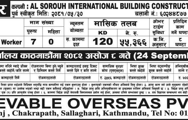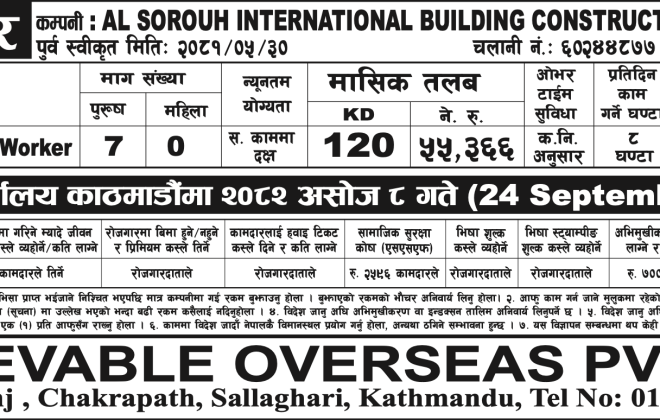 Vacancy in Al Sorough International Building Construction Company, Kuwait